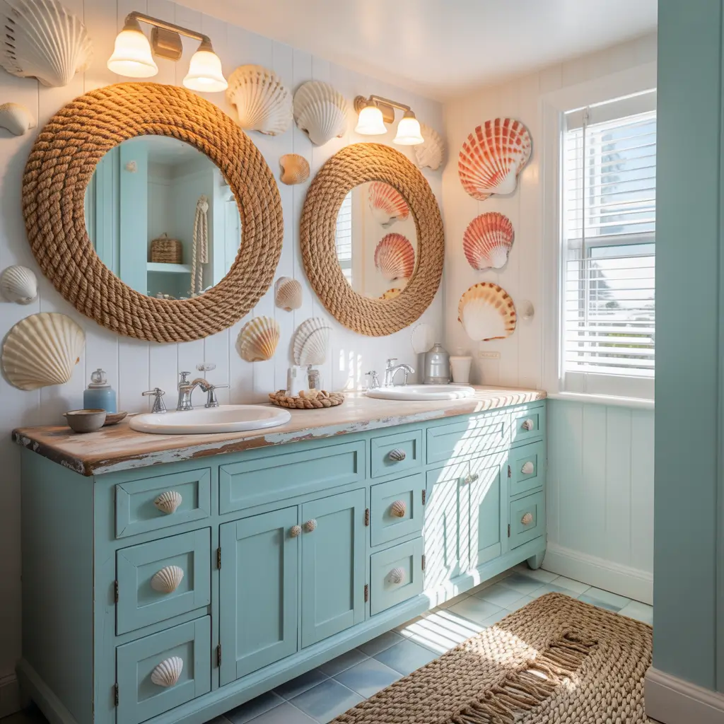 Want to bring those beach vacation vibes home? Coastal rope decor does exactly that without making your bathroom look like a seafood restaurant. The natural texture and neutral color of rope work surprisingly well with almost any bathroom style.