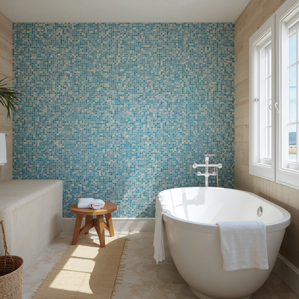 The beauty of coastal blue mosaics lies in their ability to create movement and depth. Small tiles in varying shades of blue mimic water’s natural flow, making your morning shower feel like a dip in the ocean. Well, a warm ocean with perfect water pressure, but you get the idea.