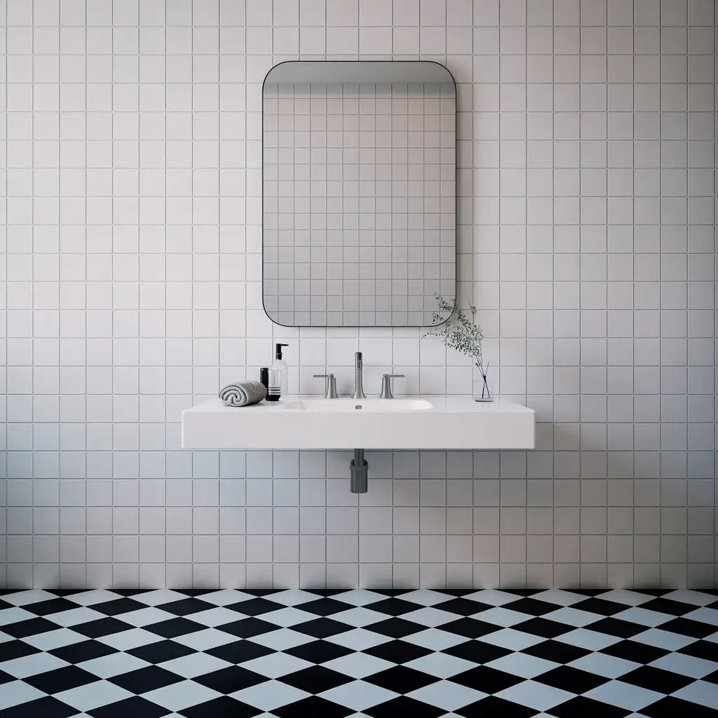 The beauty of checkerboard patterns lies in their versatility. Small checks feel playful and vintage, while large format checks read modern and sophisticated. You can even play with colors beyond black and white – navy and white, anyone?