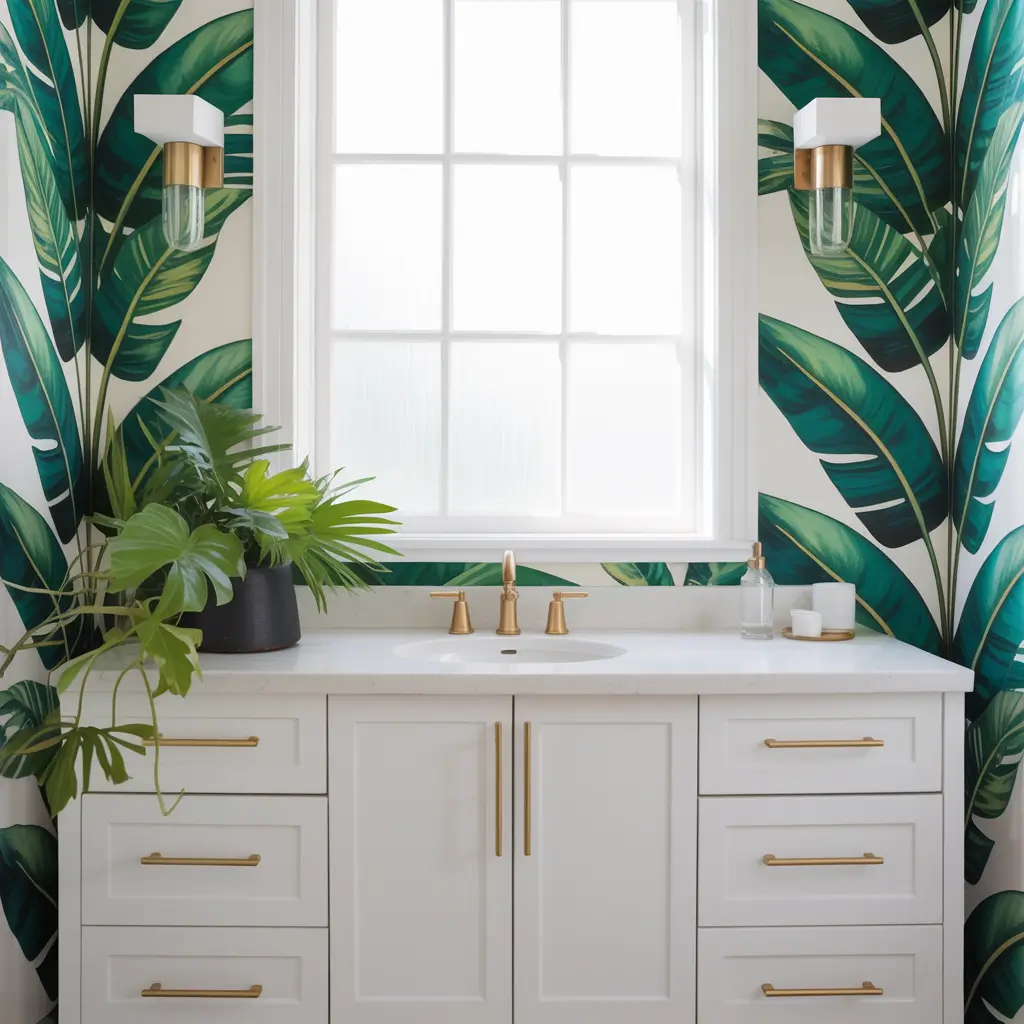 You know that feeling when you’re stuck in a never-ending Zoom meeting and you start daydreaming about sipping cocktails on a beach somewhere? That’s exactly what tropical leaf wallpaper brings to your bathroom. I’m talking lush palm fronds, oversized banana leaves, and monstera patterns that transport you straight to Bali every morning.