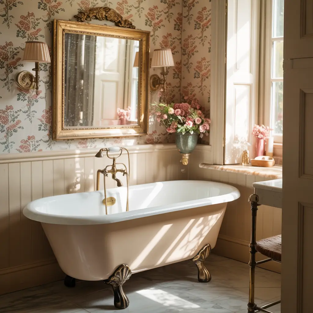 Vintage Floral Bathroom Wallpaper