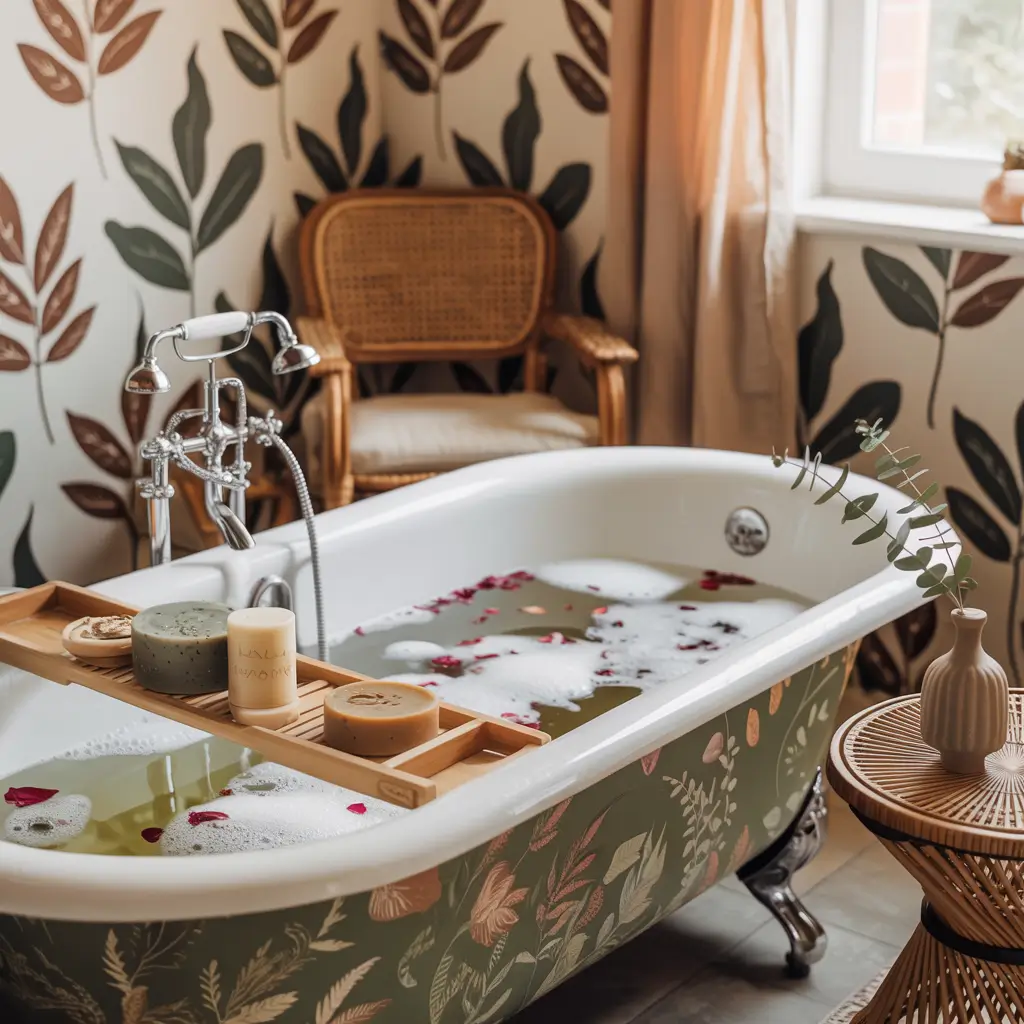 What makes boho patterns so perfect for bathrooms? They’re inherently relaxing and create this earthy, grounded feeling that pairs perfectly with self-care routines. Plus, the warm, muted color palettes hide water spots better than stark white walls ever could.