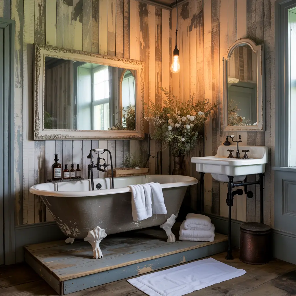 - Mix vintage patterns with contemporary fixtures