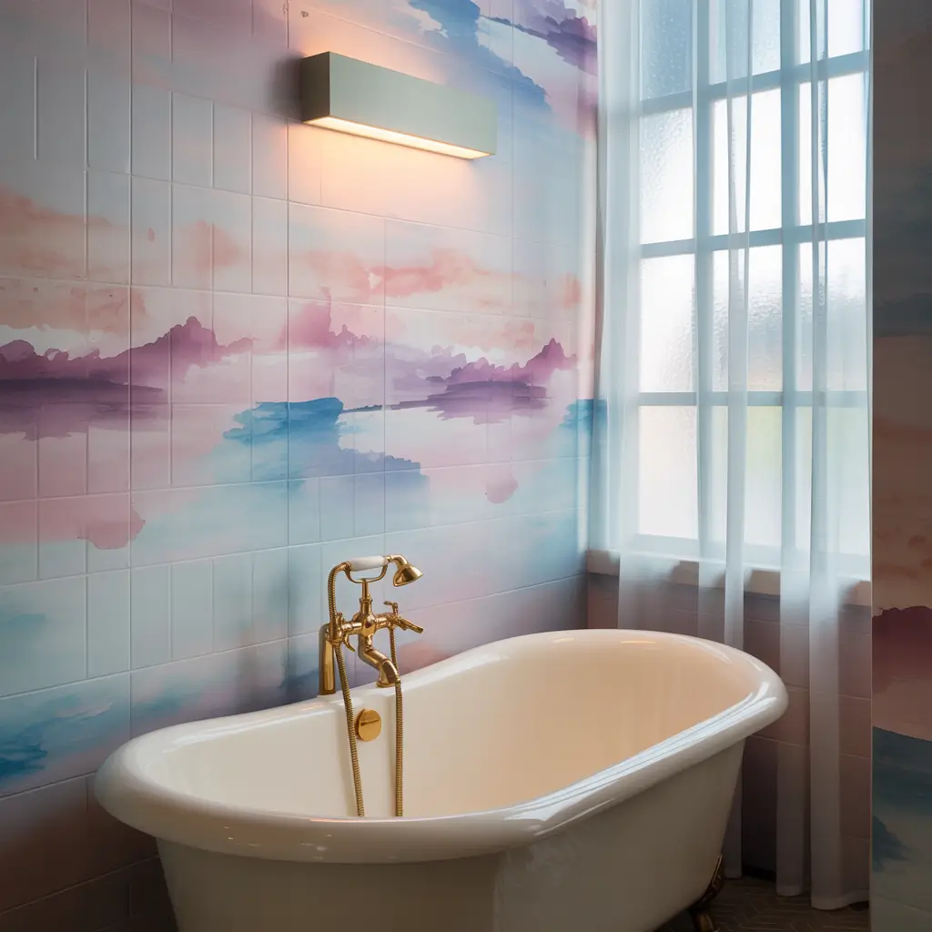 The beauty of watercolor patterns lies in their organic, unpredictable nature. No two sections look exactly the same, which gives your walls this gorgeous, hand-painted quality. I’ve seen stunning ombré effects, abstract washes, and delicate cloud-like patterns that make bathrooms feel twice their actual size.