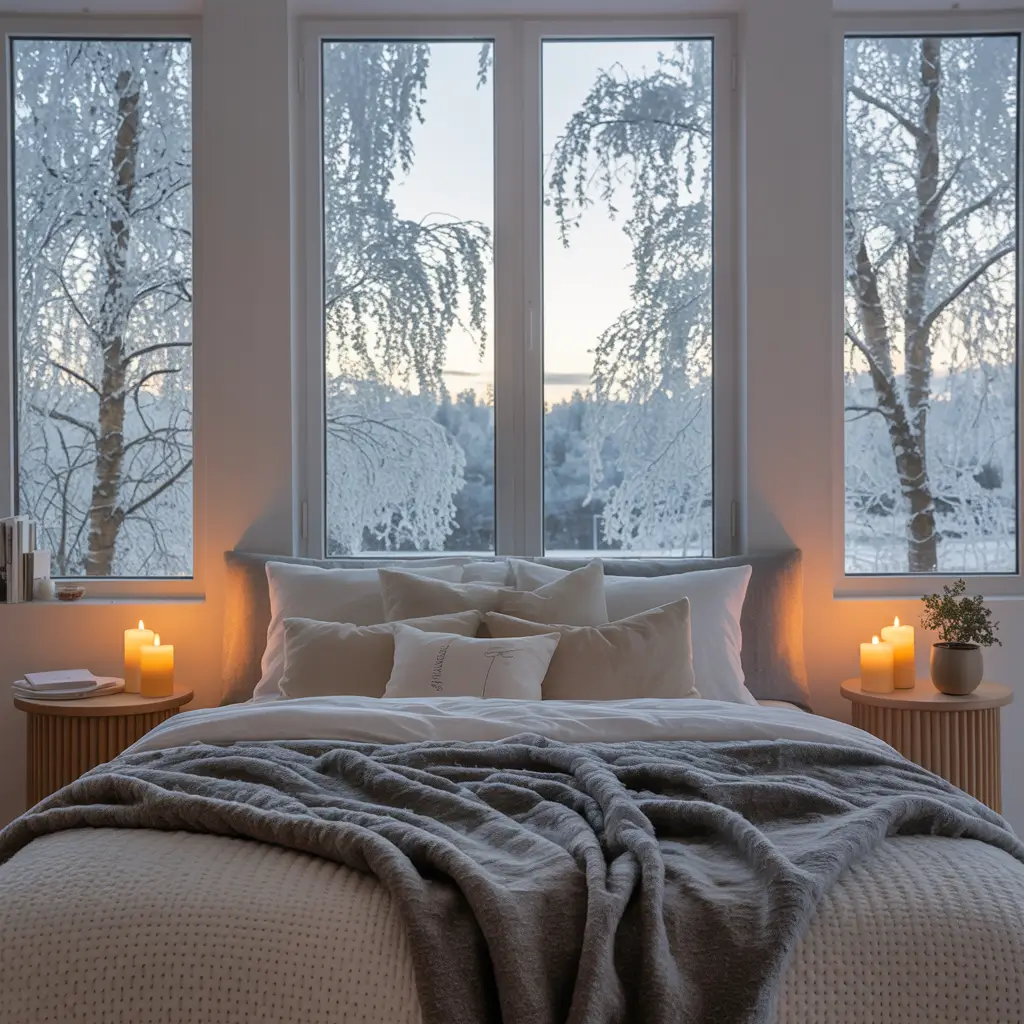 Scandinavians deal with dark winters by mastering light. Layer your lighting like your life depends on it—because in winter, it kind of does. I have five light sources in my bedroom now: overhead, bedside lamps, string lights, candles, and a sunrise alarm clock. Excessive? Maybe. Cozy? Absolutely.