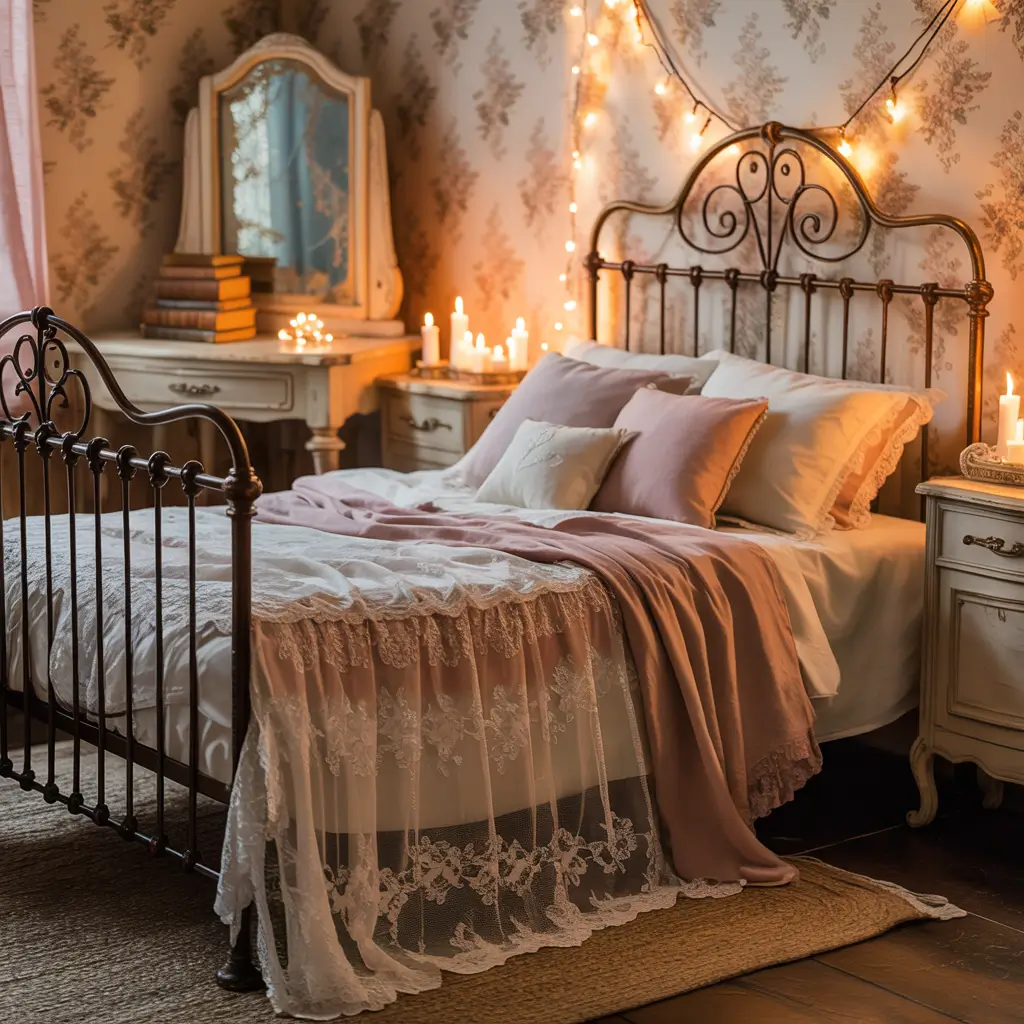 The magic isn’t just the lights—it’s how they interact with vintage pieces. Old mirrors reflect the twinkles, vintage fabrics look softer under the glow, and suddenly your bedroom feels like a secret hideaway from a storybook.