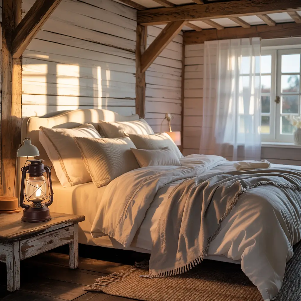 Farmhouse cozy makes you want to bake bread and wear flannel year-round. It’s comfort food in bedroom form—familiar, warming, and impossible to feel stressed in. My friend transformed her city apartment bedroom into farmhouse heaven, and now it feels like a rural retreat despite honking taxis outside.