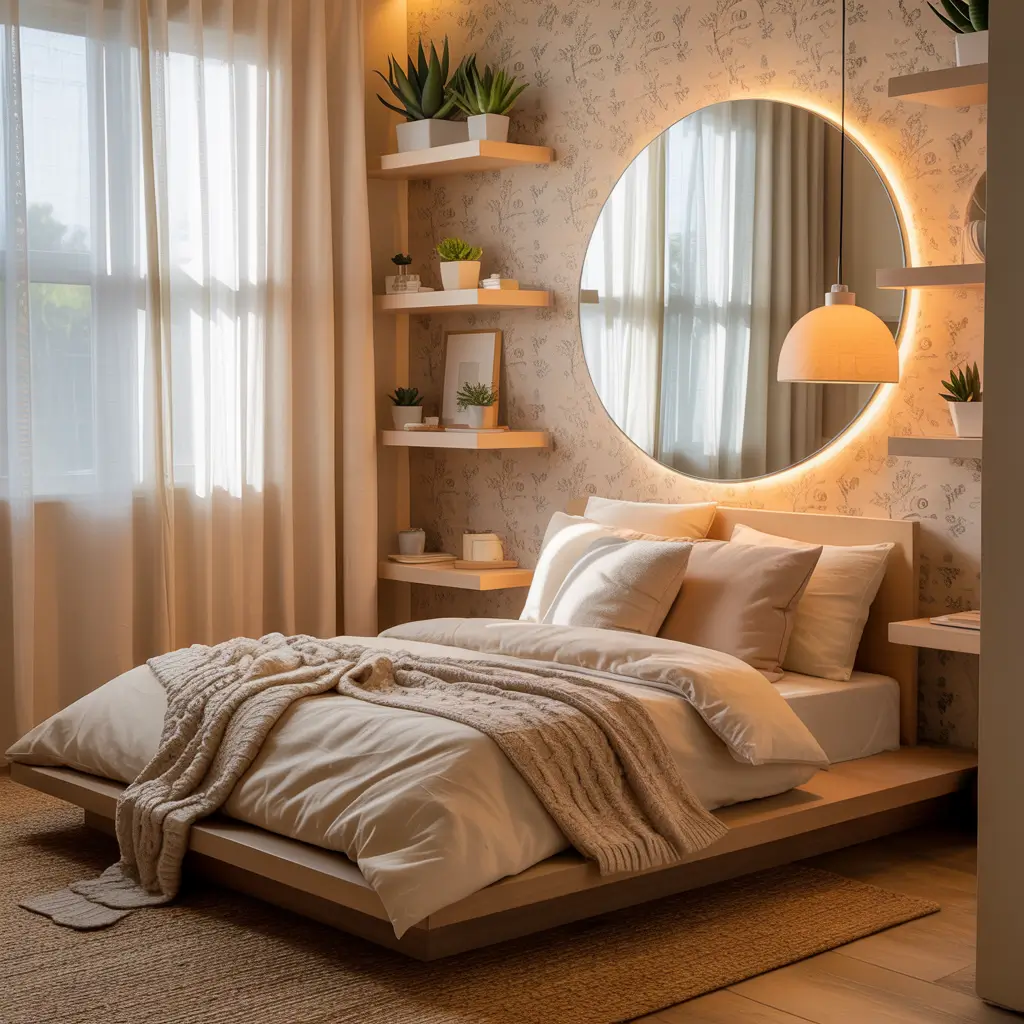 Think of your tiny bedroom as a nest, not a prison. Embrace the enclosed feeling with warm colors, soft textures, and lighting that makes the walls seem to glow. My tiny bedroom now feels intentionally cozy rather than accidentally cramped.