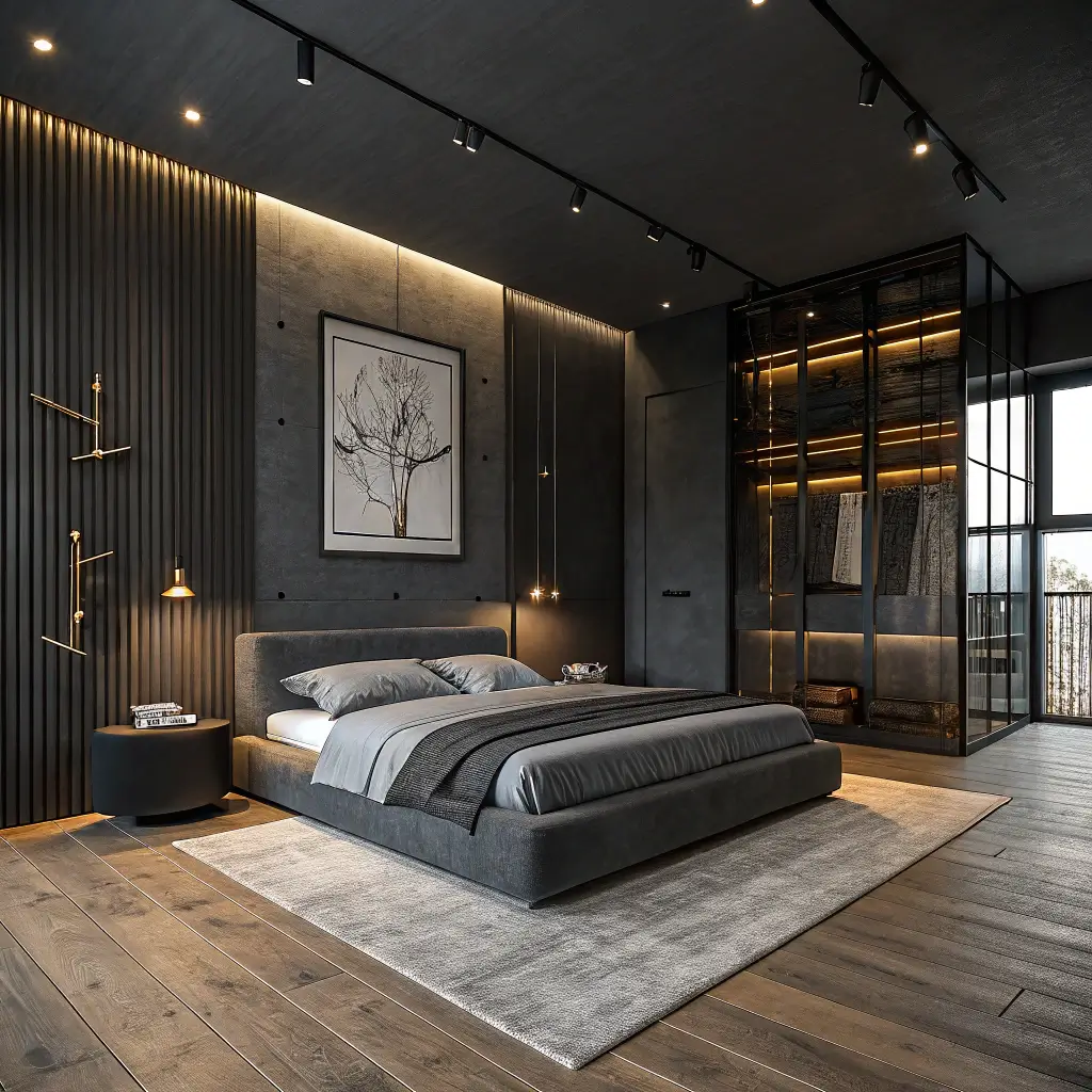 Minimalism gets a bad rap for being boring, but done right, a minimalist bedroom feels intentional, not empty. The black and grey palette keeps things masculine while avoiding that sterile hospital look that all-white minimalism sometimes creates.