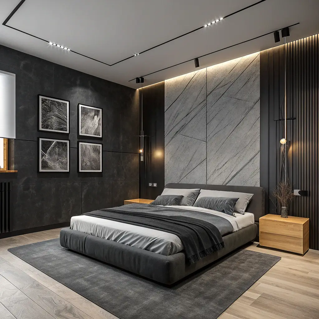 8. Contemporary Men’s Bedroom with Statement Wall