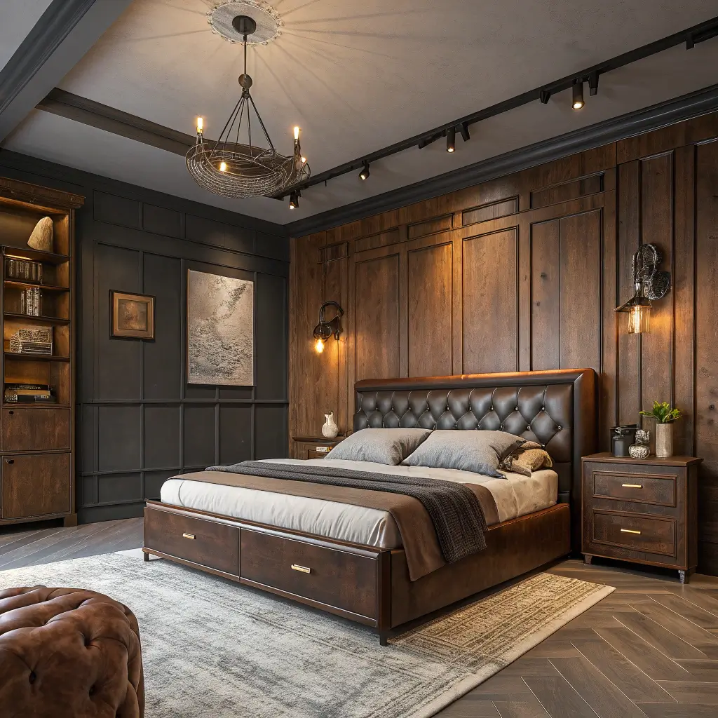5. Dark Wood Masculine Bedroom Design