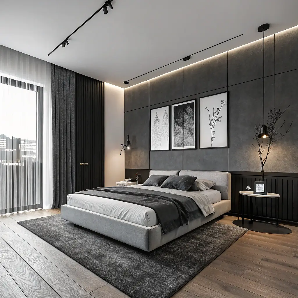 3. Minimalist Black and Grey Men’s Bedroom