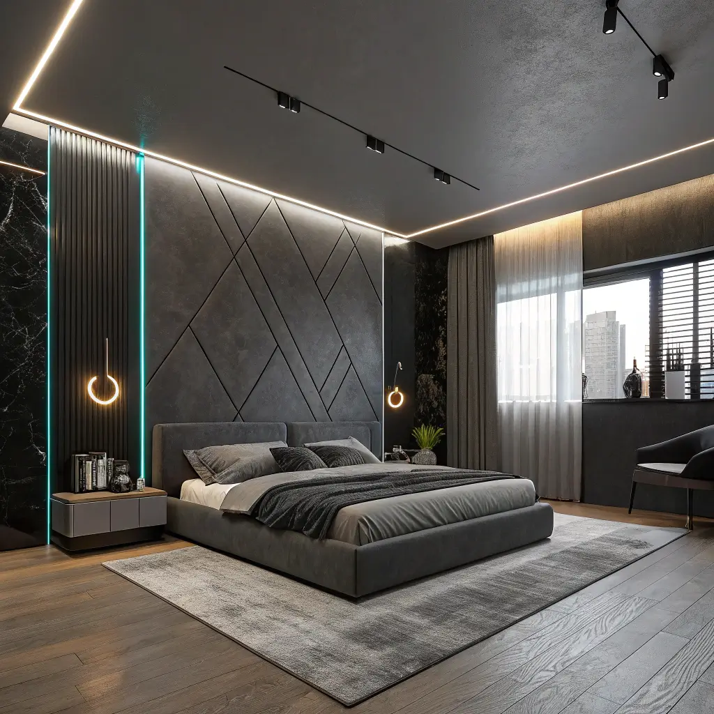 10. Sleek Modern Men’s Bedroom with LED Lighting