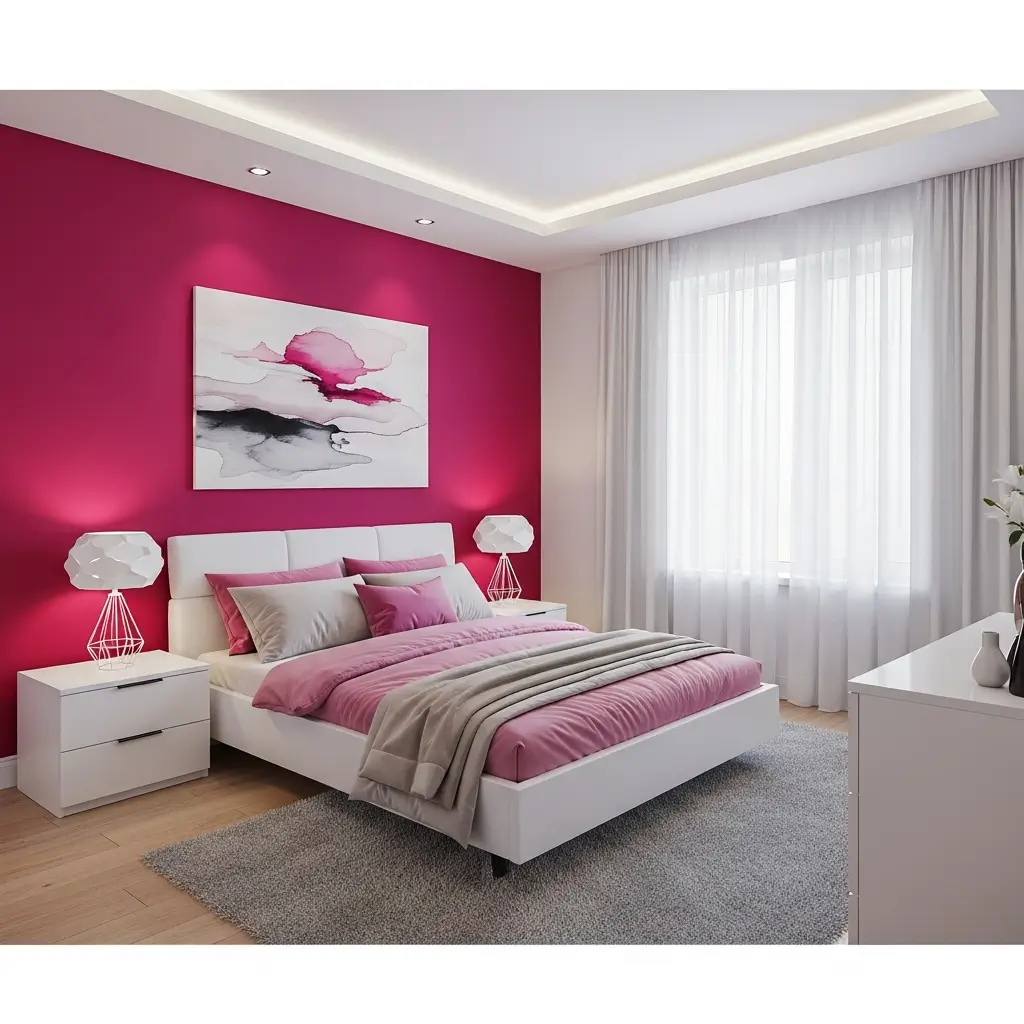 Fuchsia accent walls make bold statements without overwhelming entire rooms. This electric pink demands attention while maintaining sophistication when done right.