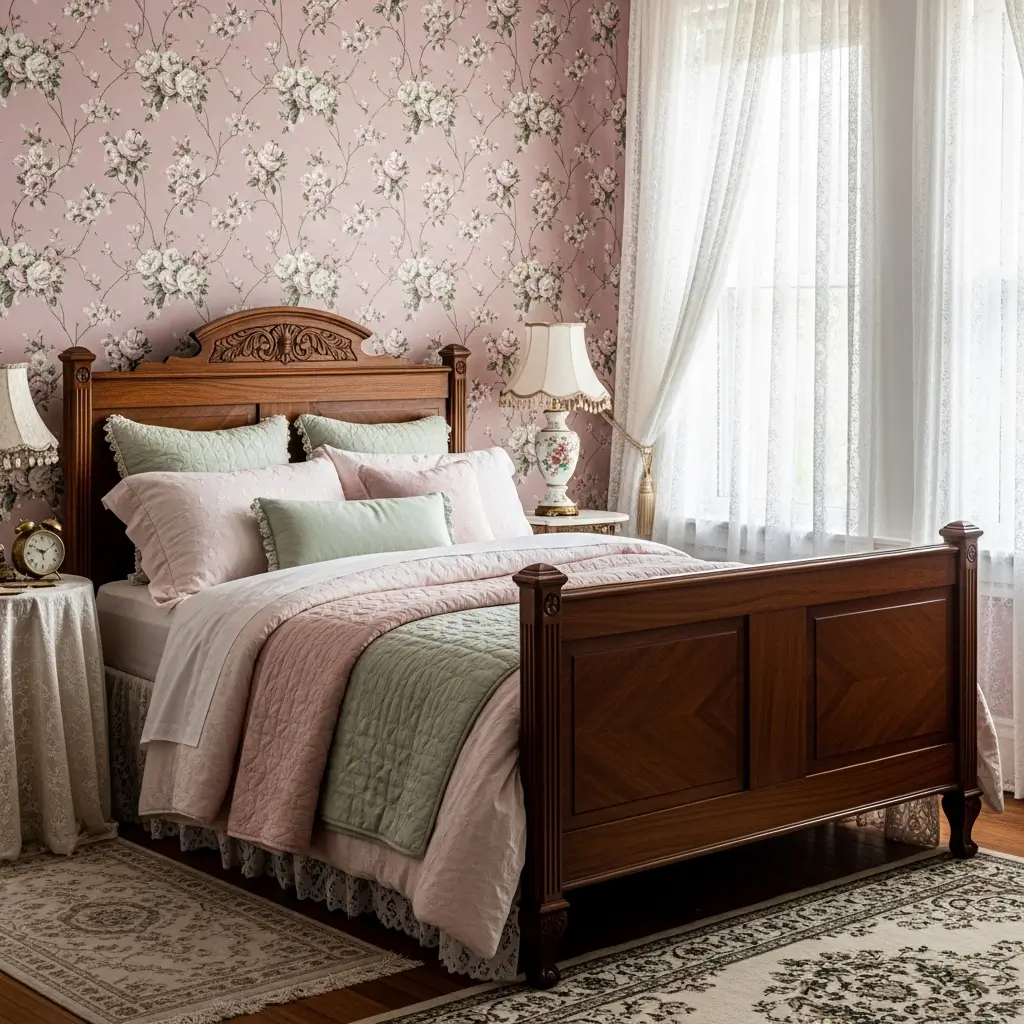 Vintage rose bedrooms celebrate romance without apology. This style embraces florals, lace, and all things feminine with sophisticated confidence.