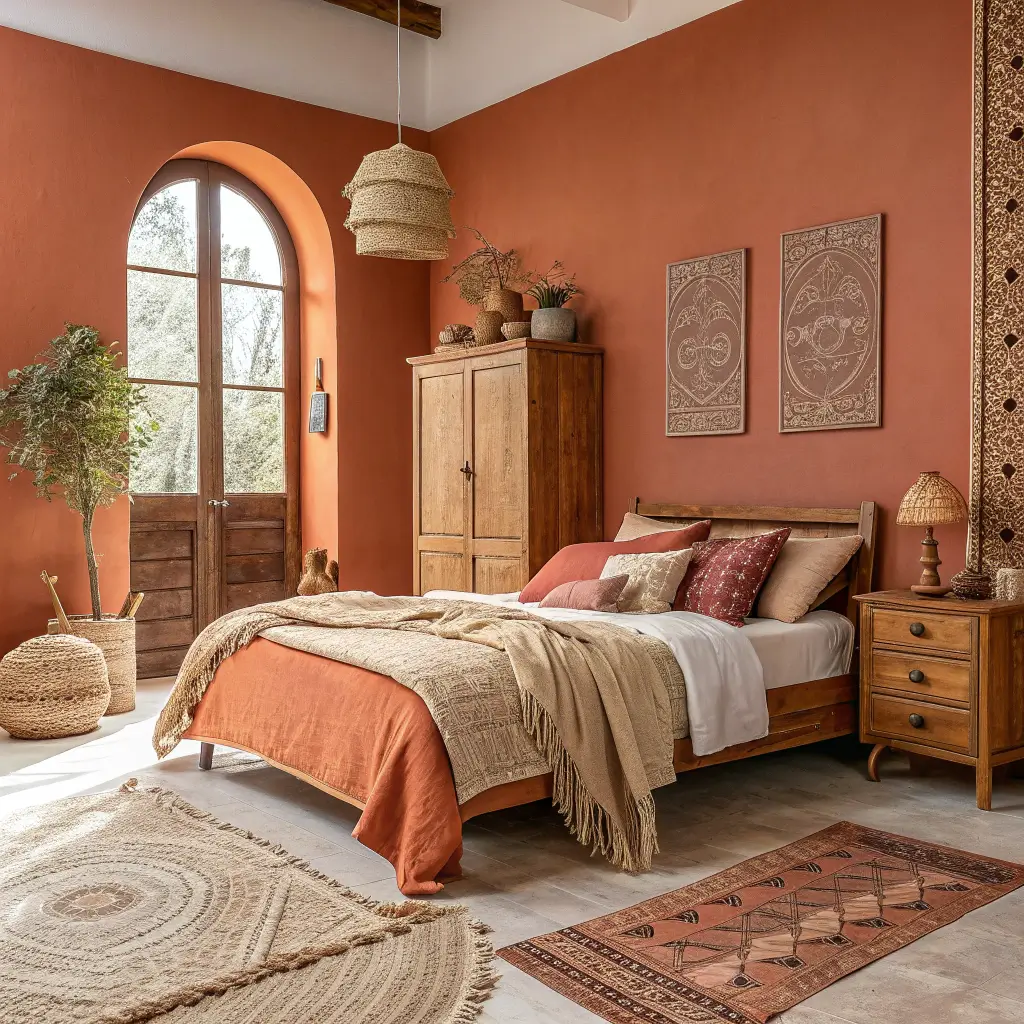 The temperature consistency rule applies hard here. Mix warm and cool earth tones and your room looks confused. Stick to either all warm (terracotta, camel, ochre) or all cool (sage, eucalyptus, stone gray). Nature doesn’t mix randomly; neither should you.