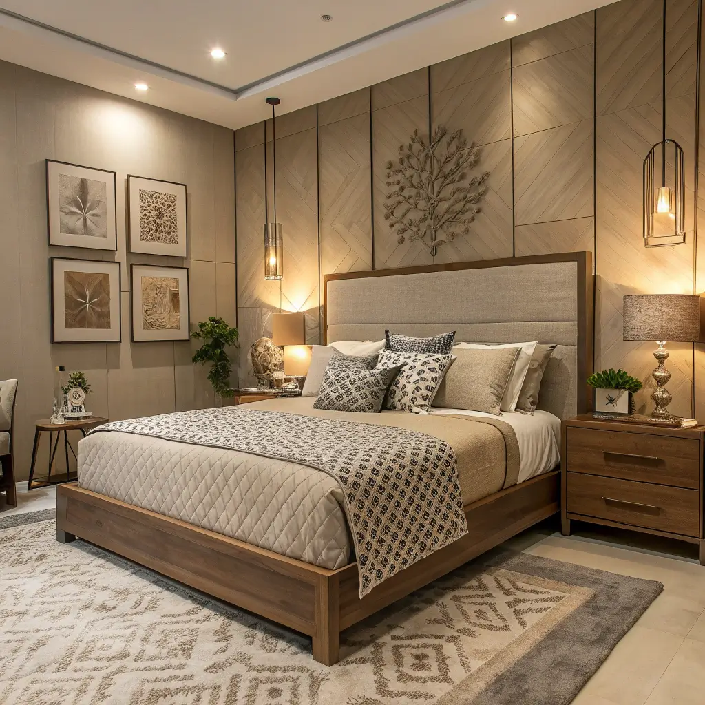 3. Modern Neutral Layered Bedroom