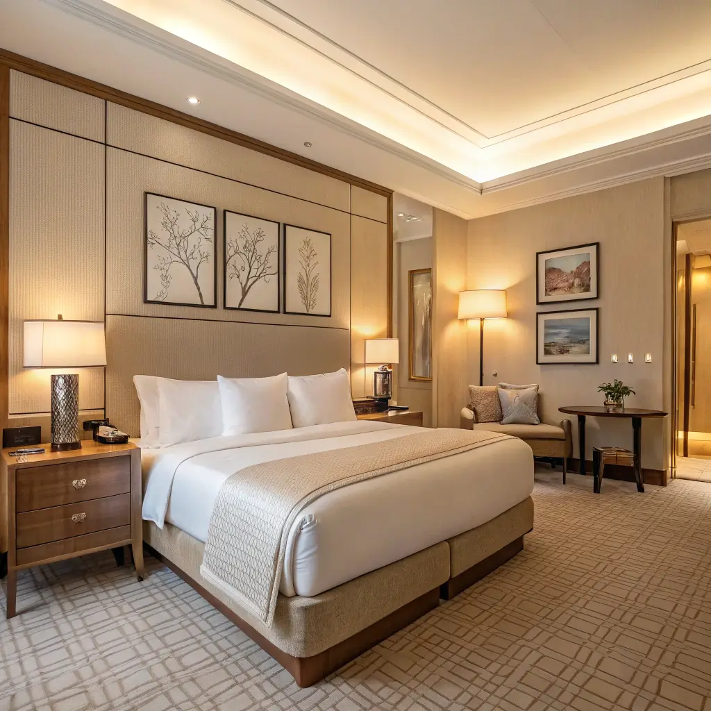 8. Clean Beige Hotel-Style Bedroom