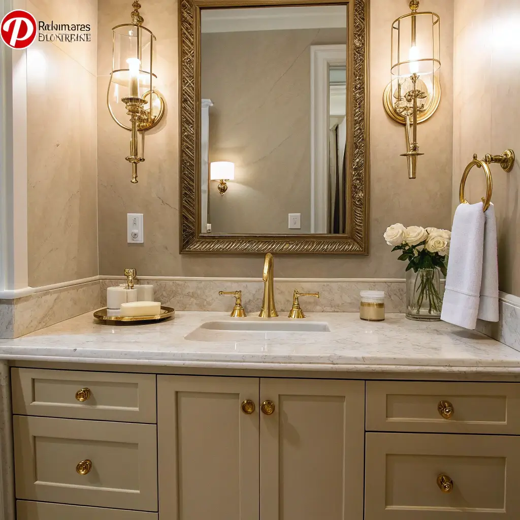 Beige Marble with Gold Fixtures Elegance