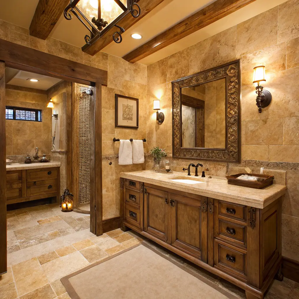 Rustic Beige Marble Bathroom Decor