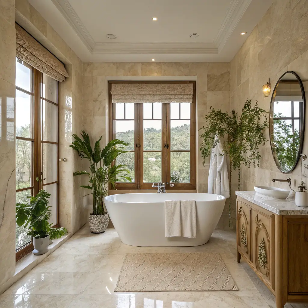 Spa-Like Beige Marble Bathroom Retreat