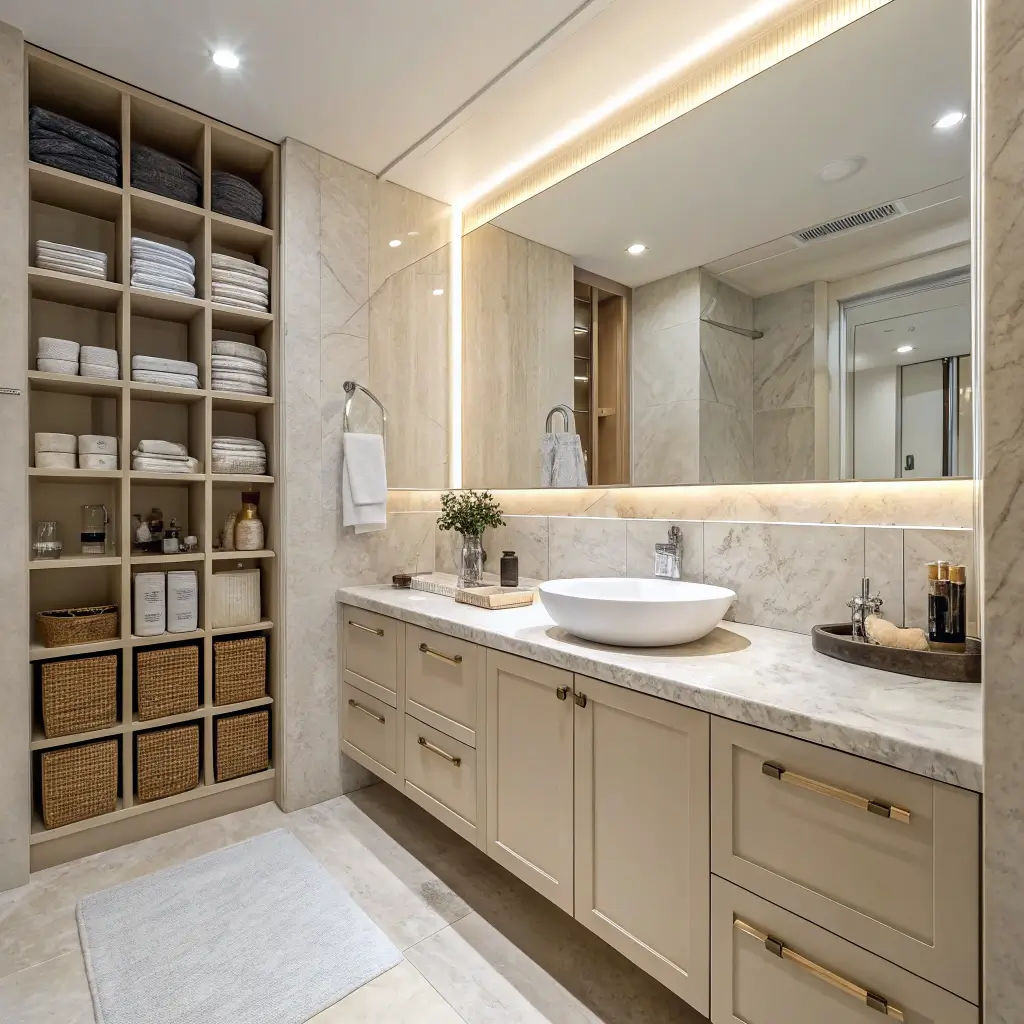 Beige Marble Bathroom Storage Solutions