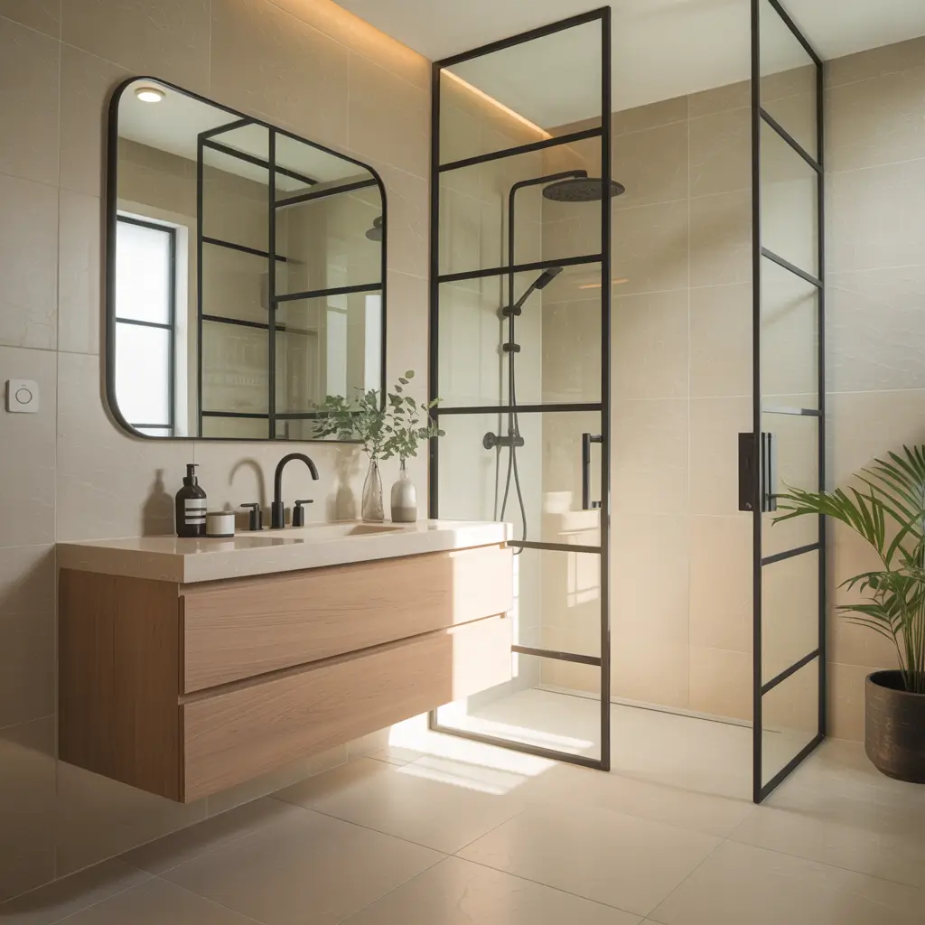 I used this palette in a recent flip, pairing warm beige tiles with charcoal grey vanities and fixtures. The result felt expensive and magazine-worthy, even though we stuck to a reasonable budget.