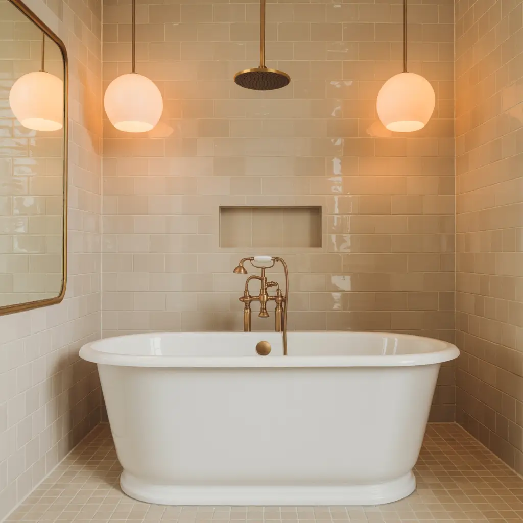 Want instant elegance? Pair beige tiles with gold fixtures. Not the gaudy, 1980s brass – I’m talking about sophisticated brushed gold or champagne bronze that whispers luxury rather than shouting it.