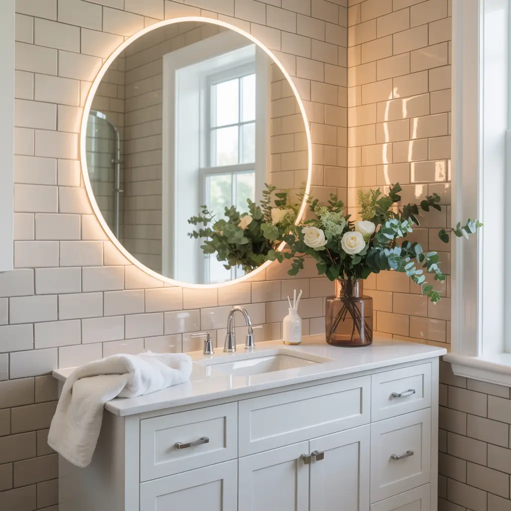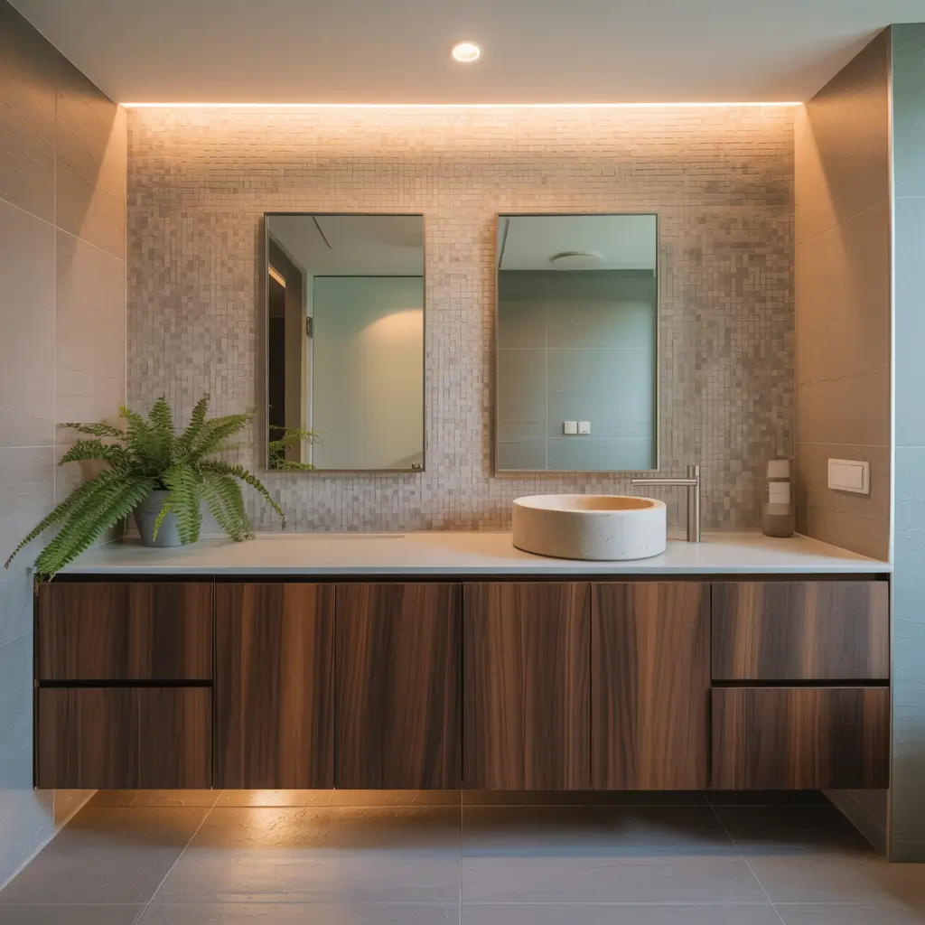 I recently renovated my guest bathroom with this exact combo. Warm beige floor tiles, coordinating wall tiles, and a sleek white double vanity. The result? A space that feels twice as large and infinitely more inviting.