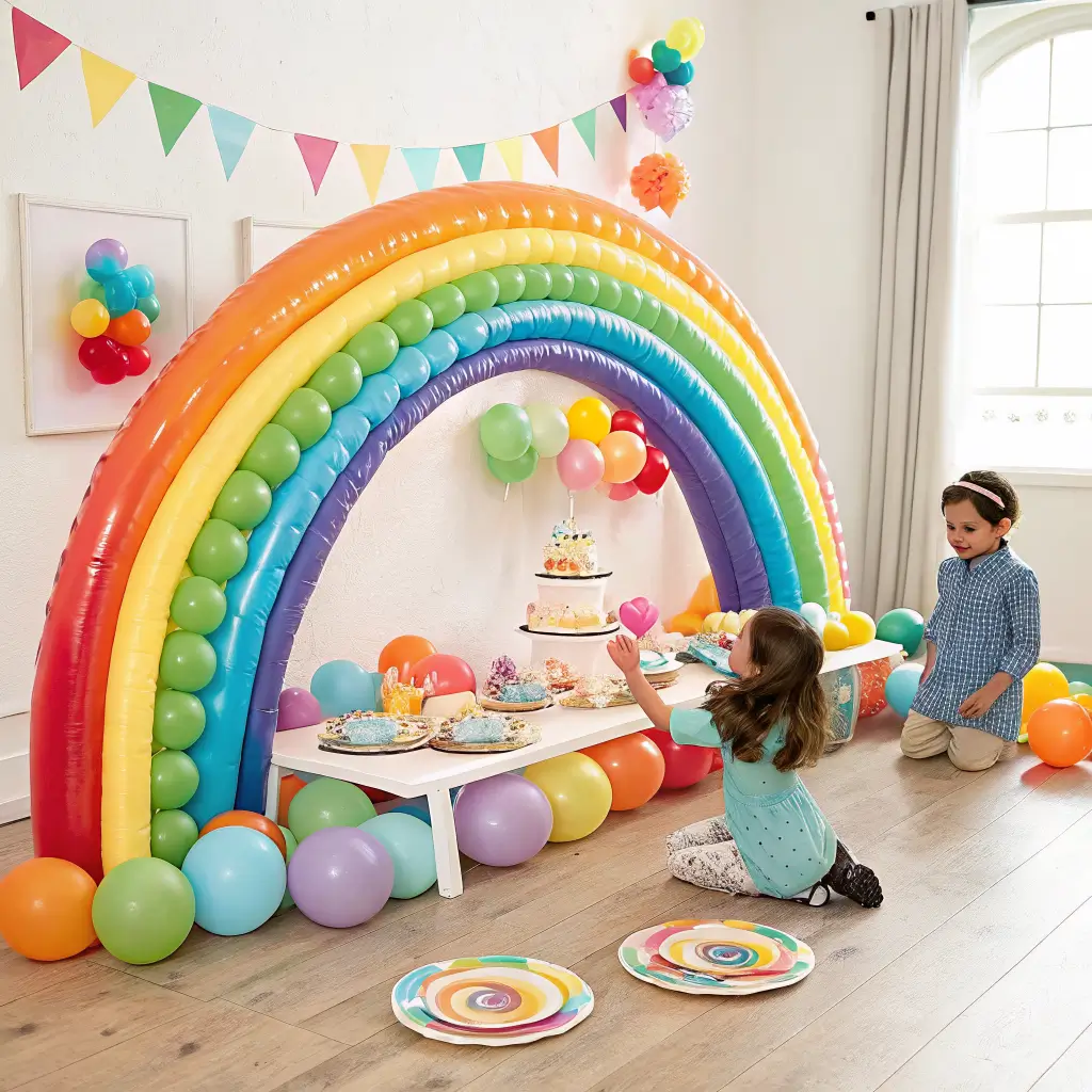 The magic happens when you create balloon clouds at varying levels. Hang some from the ceiling, tape others to walls at different heights, and let a few float freely around the room. Your guests will feel like they’ve stepped into a rainbow wonderland.