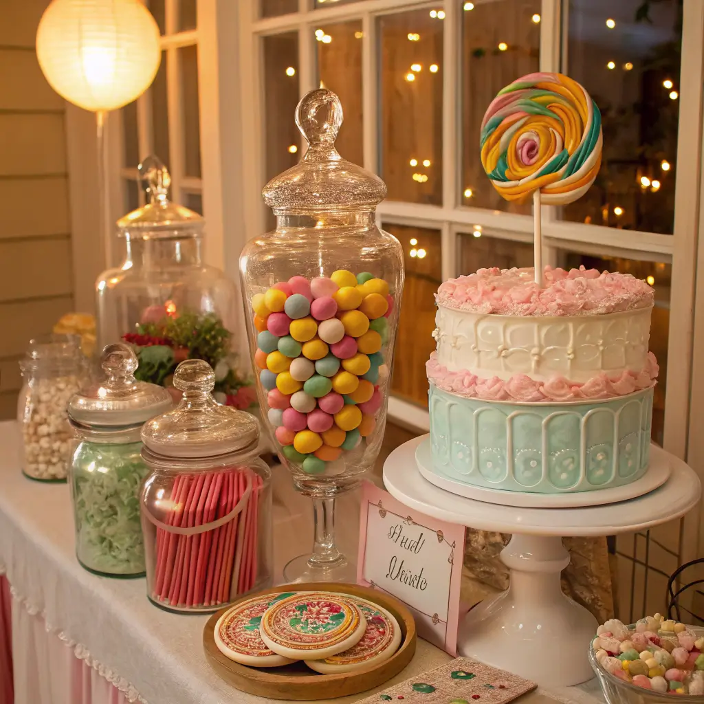 Add candy-scented elements like cotton candy machines or candy-scented candles (kept safely away from little hands). The sensory experience makes the theme even more immersive.