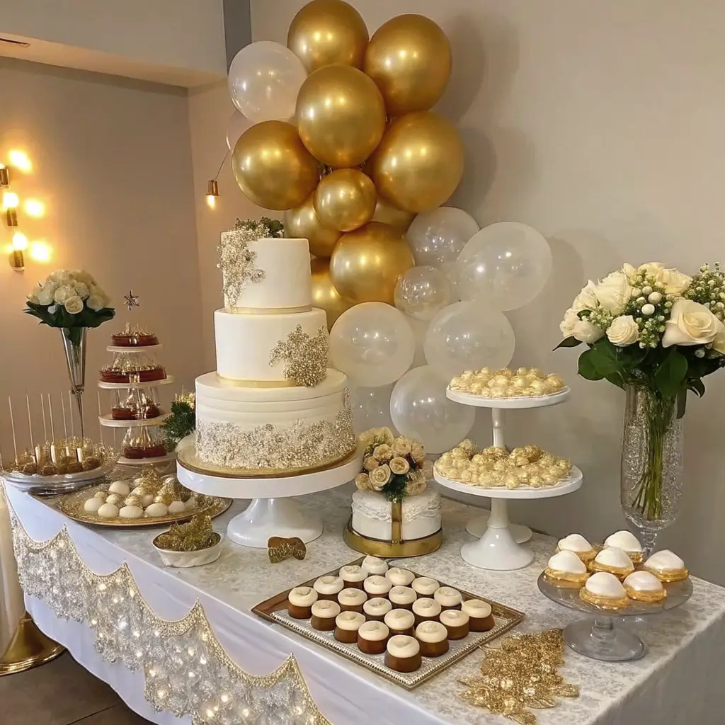 Sometimes you want sophistication without the stuffiness, and that’s where the gold and white dessert table shines. I first tried this theme for my friend’s milestone birthday, and honestly, it felt like we were dining in a fancy hotel.