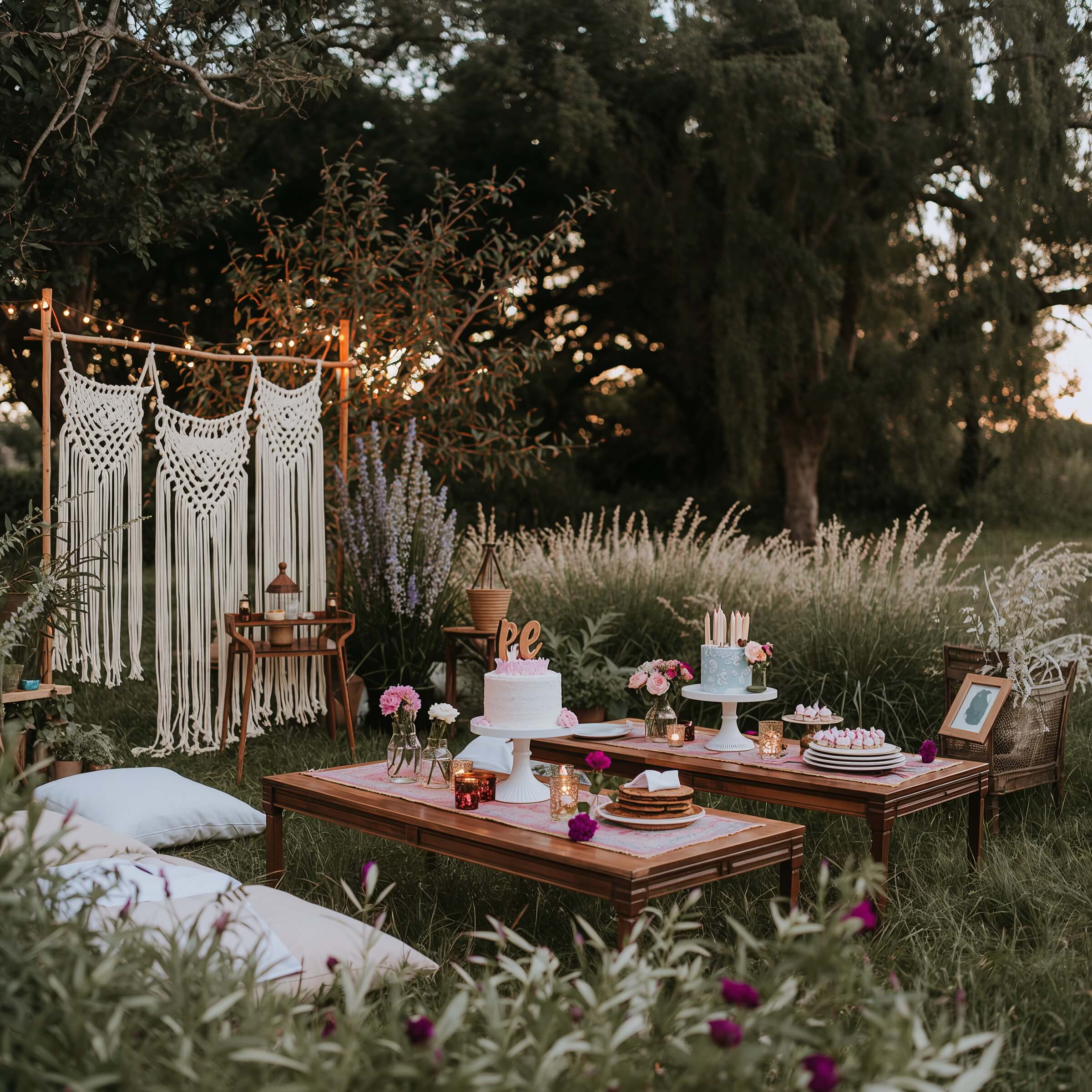 Create a free-spirited, artistic atmosphere with the bohemian garden theme. This style celebrates natural beauty and creative expression, making it perfect for artistic souls and nature lovers.