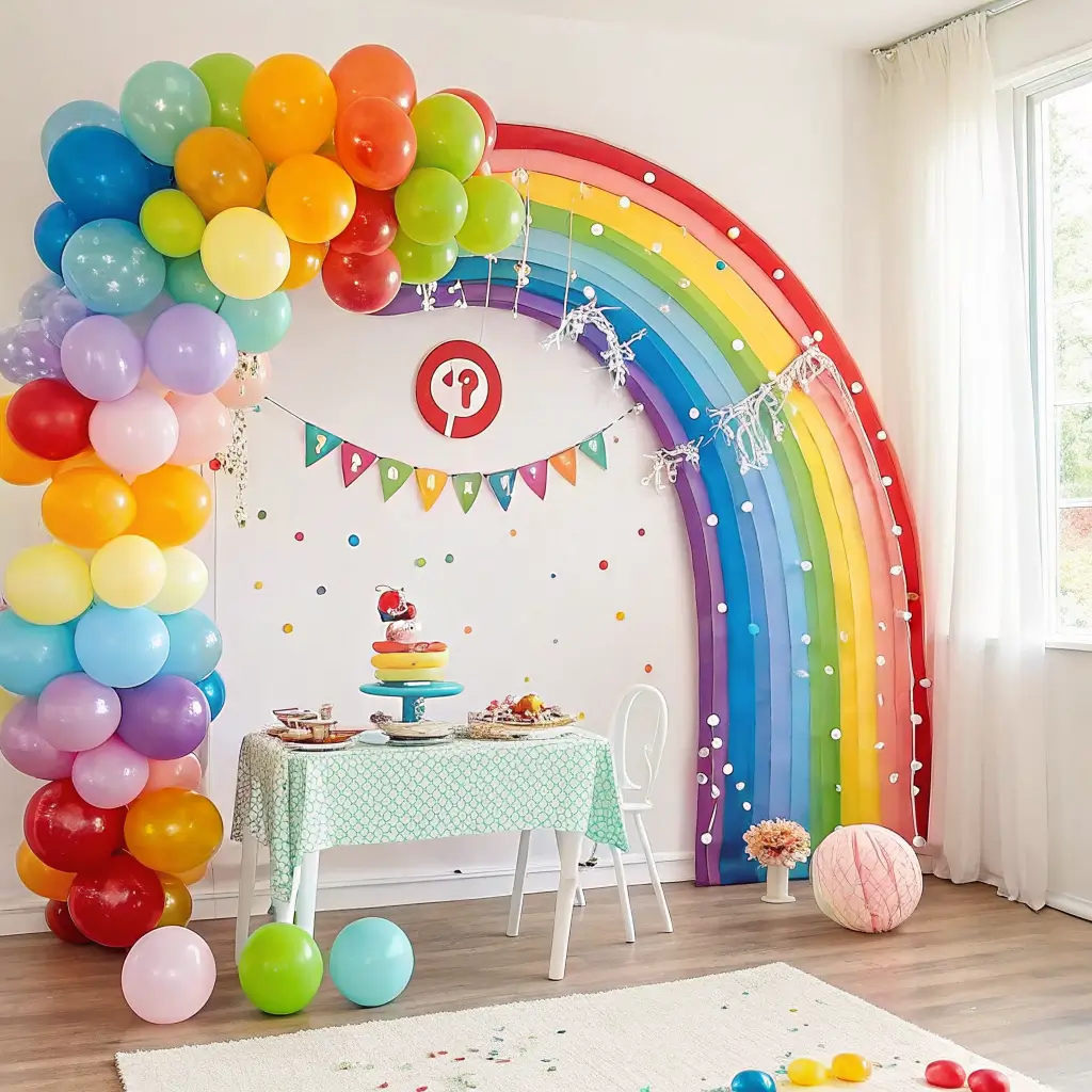 Rainbow birthday room decor creates an instant happy mood and photographs beautifully. If your goal is maximum joy with zero dull corners, this setup makes that happen.