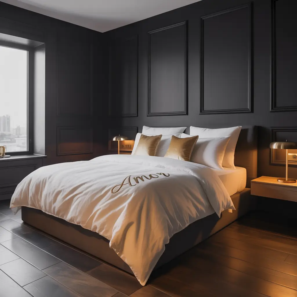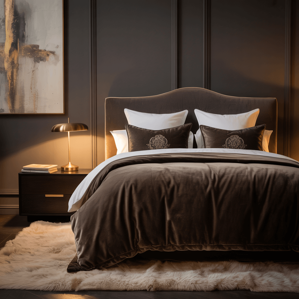 Black and Brown Bedroom with Soft Lighting