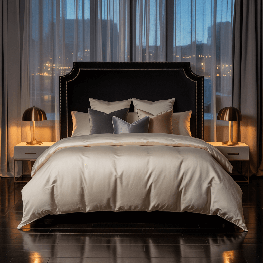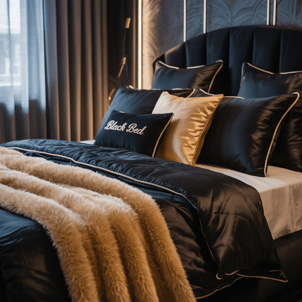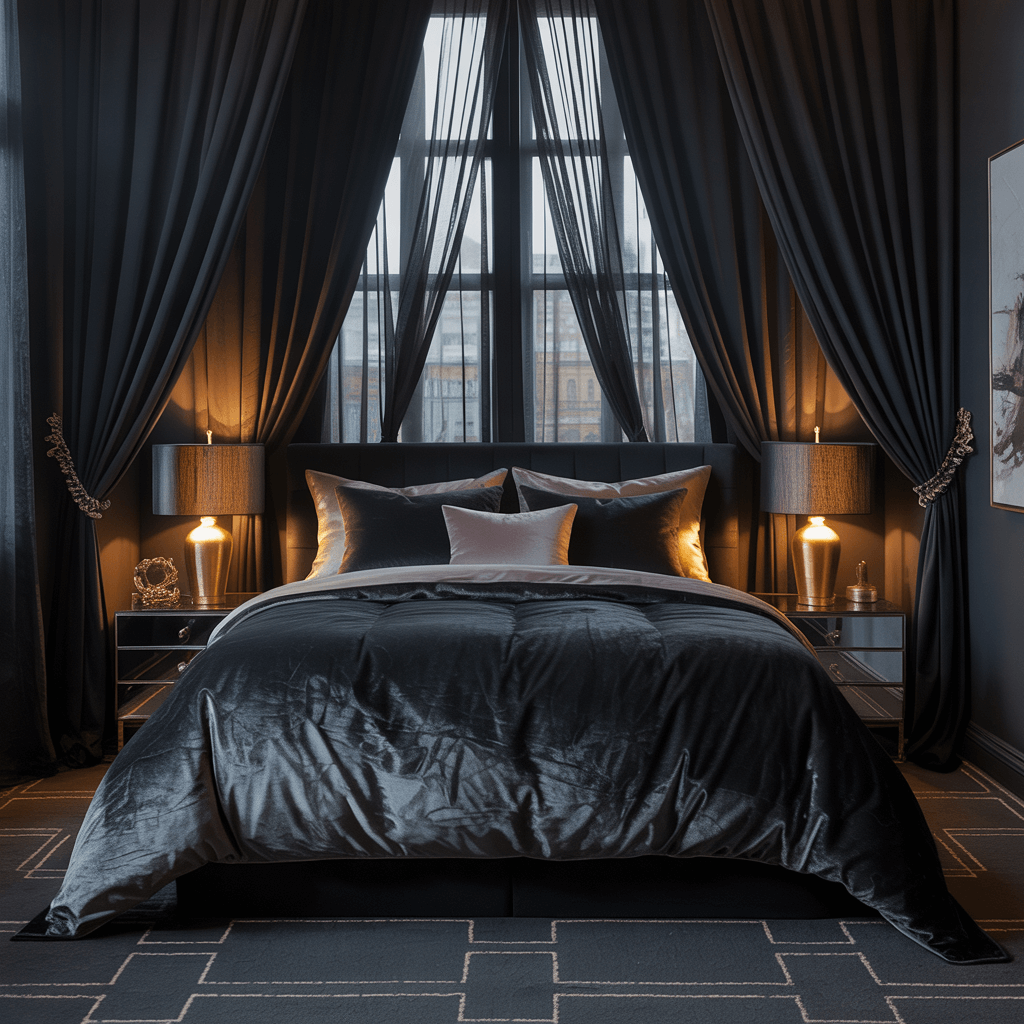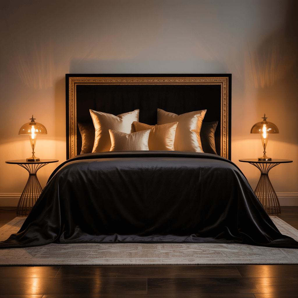Layer different textures – a matte black duvet, shiny gold throw pillows, maybe a faux fur blanket in deep charcoal. The mix keeps things interesting and prevents that matchy-matchy catalog look. Plus, you can switch things up seasonally without major investment.