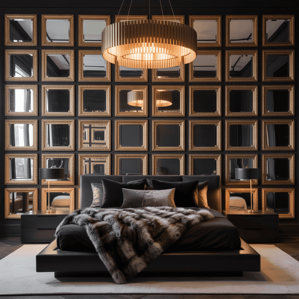 Channel your inner Gatsby with a full Art Deco-inspired design. This style practically invented the black and gold combo, and for good reason. Geometric patterns, bold lines, and metallic accents create a bedroom that feels both vintage and timeless.