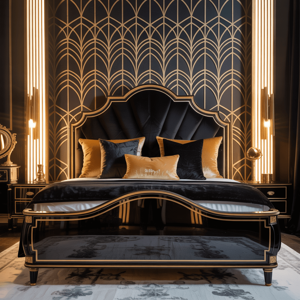 Black and Gold Art Deco Bedroom