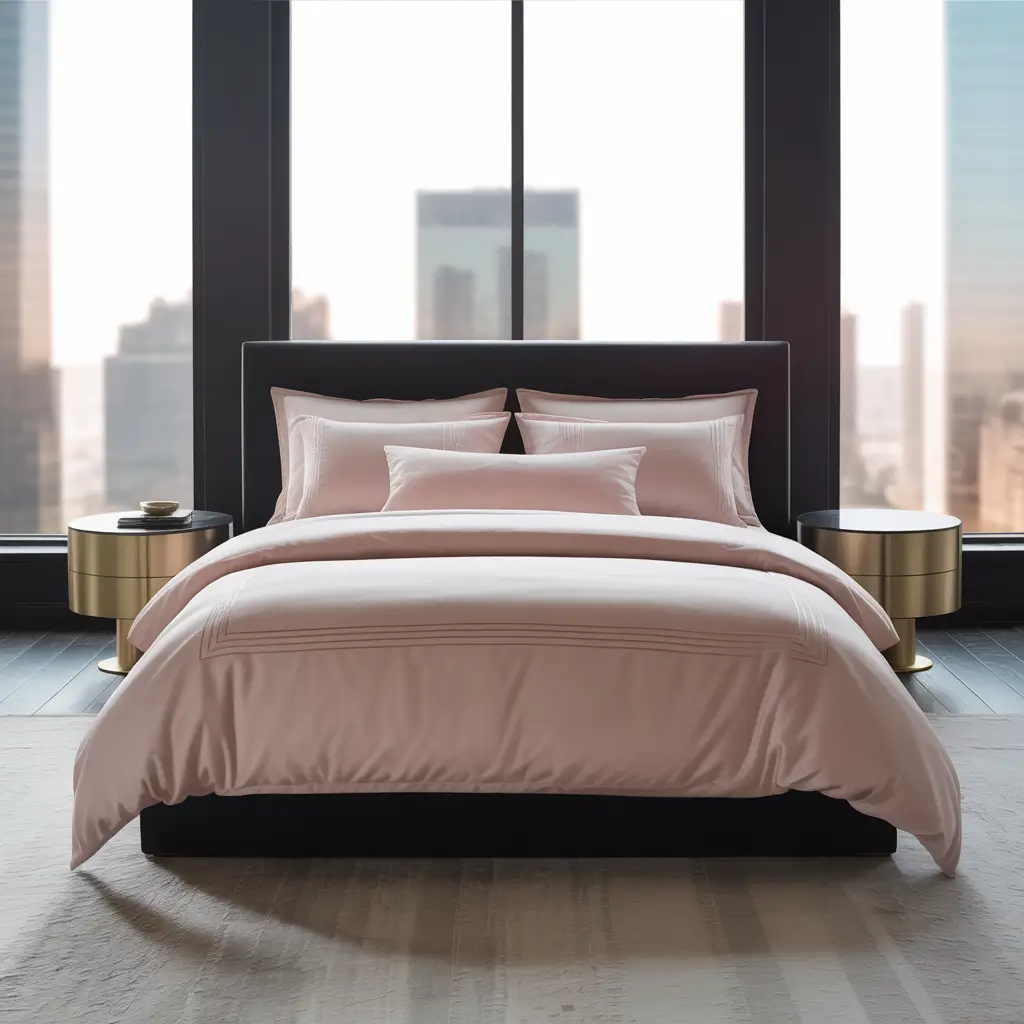 • Middle layer: A pink duvet or comforter (solid or patterned)