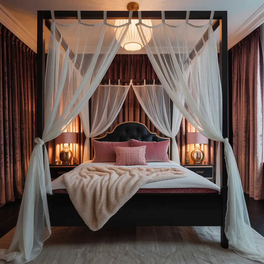 The canopy bed already commands attention, but when it’s black? That’s next-level drama. Soften this bold choice with flowing pink curtains on the canopy, pink bedding, or strategically placed pink decor around the room. The contrast creates this push-and-pull that keeps your eye moving and interested.