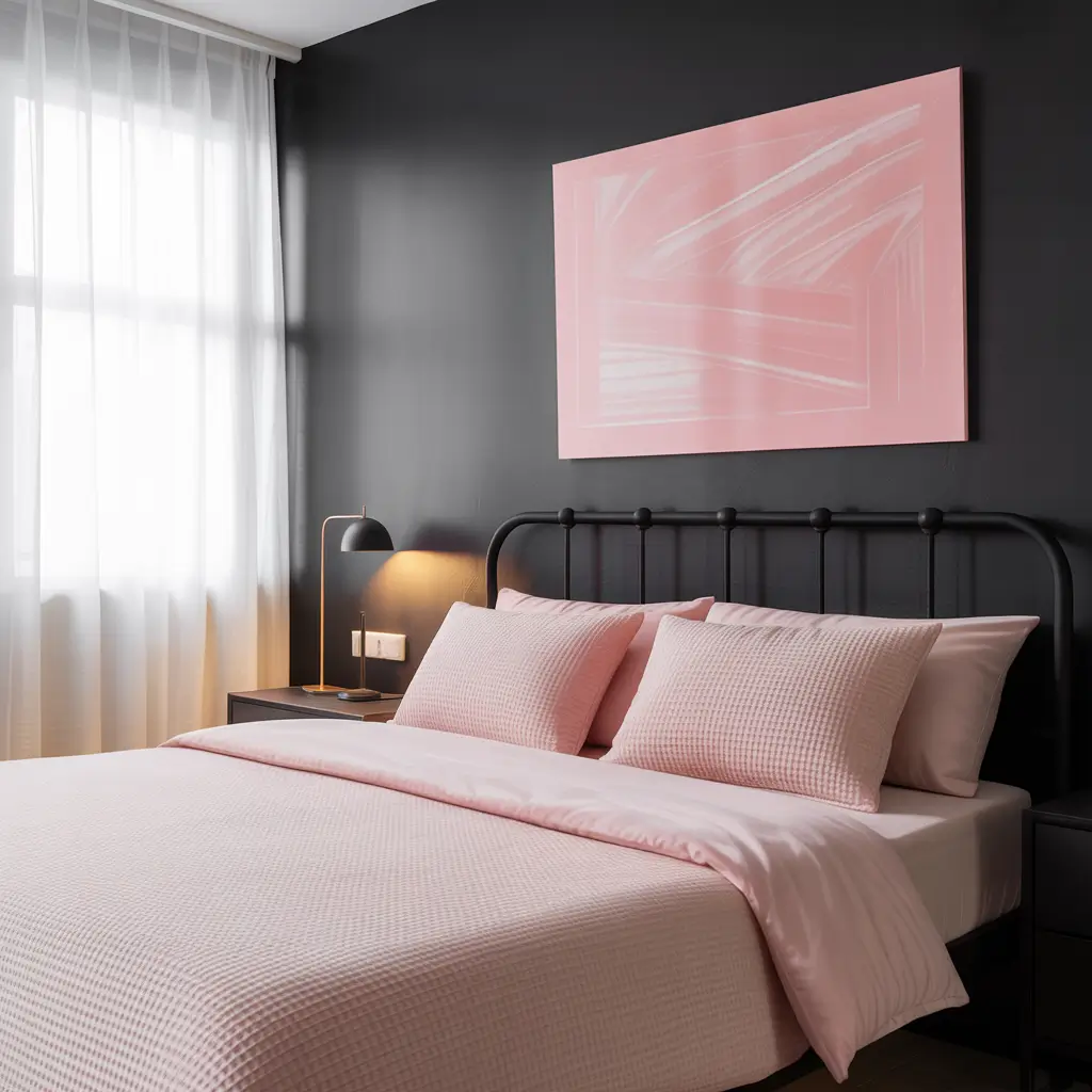 Small bedroom? No problem! Black and pink work brilliantly in compact spaces when you know the tricks. I transformed my 10×10 guest room using this palette, and visitors swear it looks bigger than it is.
