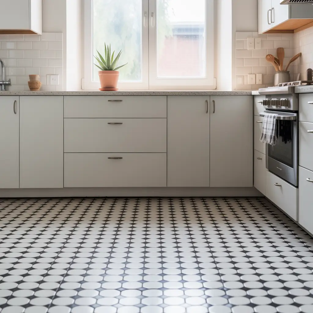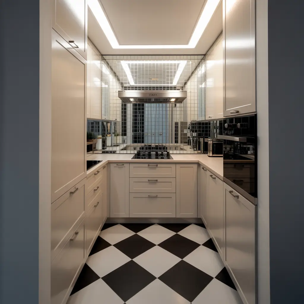 My tiny apartment kitchen uses black and white diagonal stripes on the floor, and visitors consistently guess it’s 30% larger than its actual size. The pattern creates movement that prevents the space from feeling boxed in.