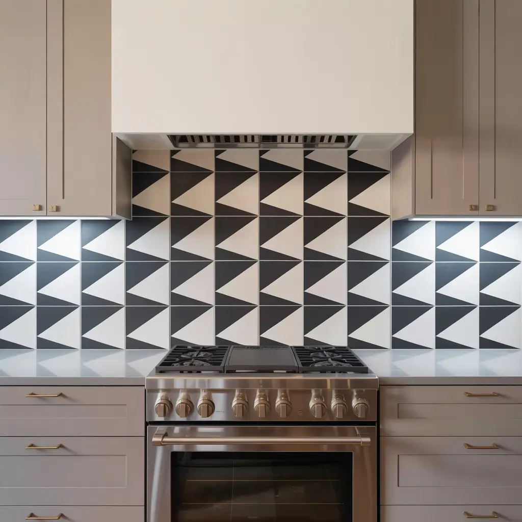I created a statement wall using black and white triangular tiles arranged in a mountain pattern. It took forever to install, but now it’s the focal point everyone remembers about my kitchen.