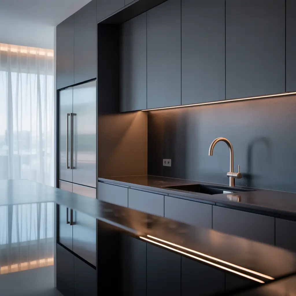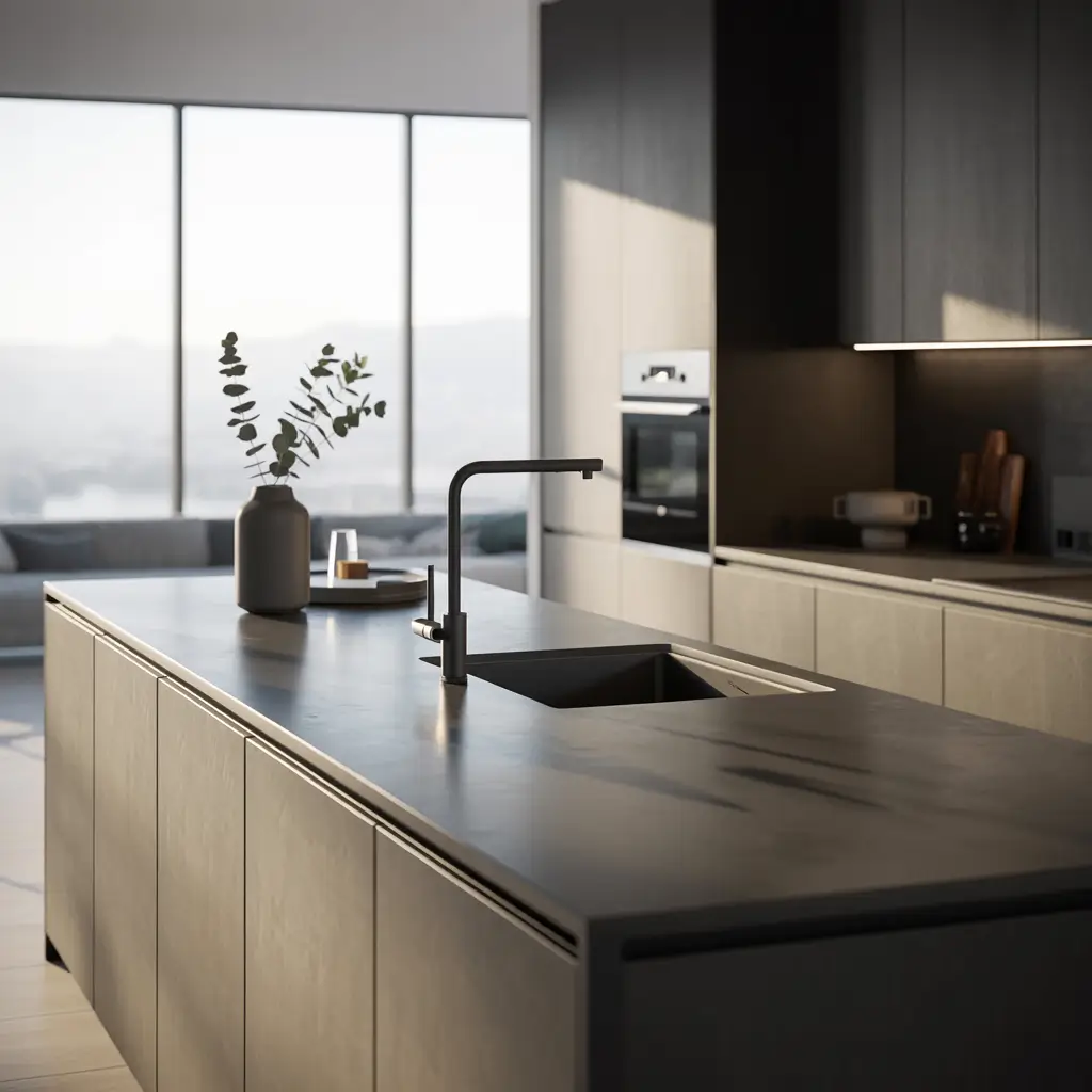 I recently saw a kitchen with matte black countertops, matte grey cabinets, and matte black fixtures, and it was absolutely stunning. The lack of reflection made every element feel substantial and grounded. Just remember to add texture through materials like wood or stone to prevent the space from feeling flat.