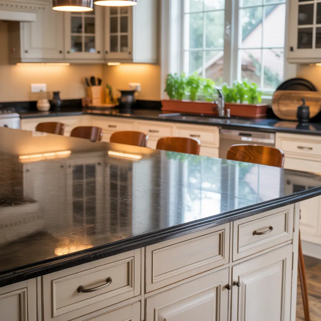Two-tone kitchens are everywhere right now, and black countertops provide the perfect anchor for this trend. Whether you go with upper cabinets in white and lowers in navy, or an island in a contrasting color, black countertops tie everything together beautifully.