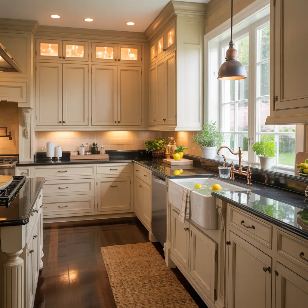 Cream brings warmth that pure white lacks, making the space feel more inviting and lived-in. I always tell people that cream cabinets are like choosing vanilla bean ice cream over plain vanilla – there’s just more depth and complexity to the color. When paired with black countertops, the result is sophisticated without being severe.
