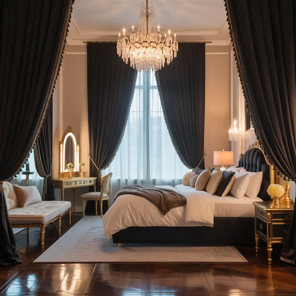 The beauty is in the details. Gold grommets on black fabric, gold tiebacks, or even gold-leafed curtain rods elevate basic black curtains to luxury status. My personal favorite? Black curtains with thin gold threading woven through – subtle but stunning.