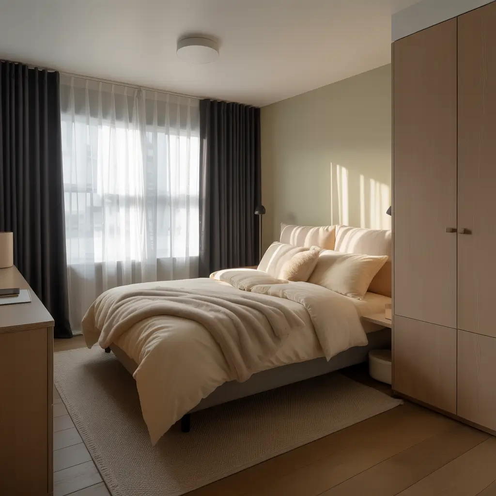 Light-colored walls and bedding balance the dark curtains, preventing that closed-in feeling. My small bedroom has white walls, cream bedding, and those dramatic black curtains. Guests always comment on how spacious it feels. Mission accomplished.