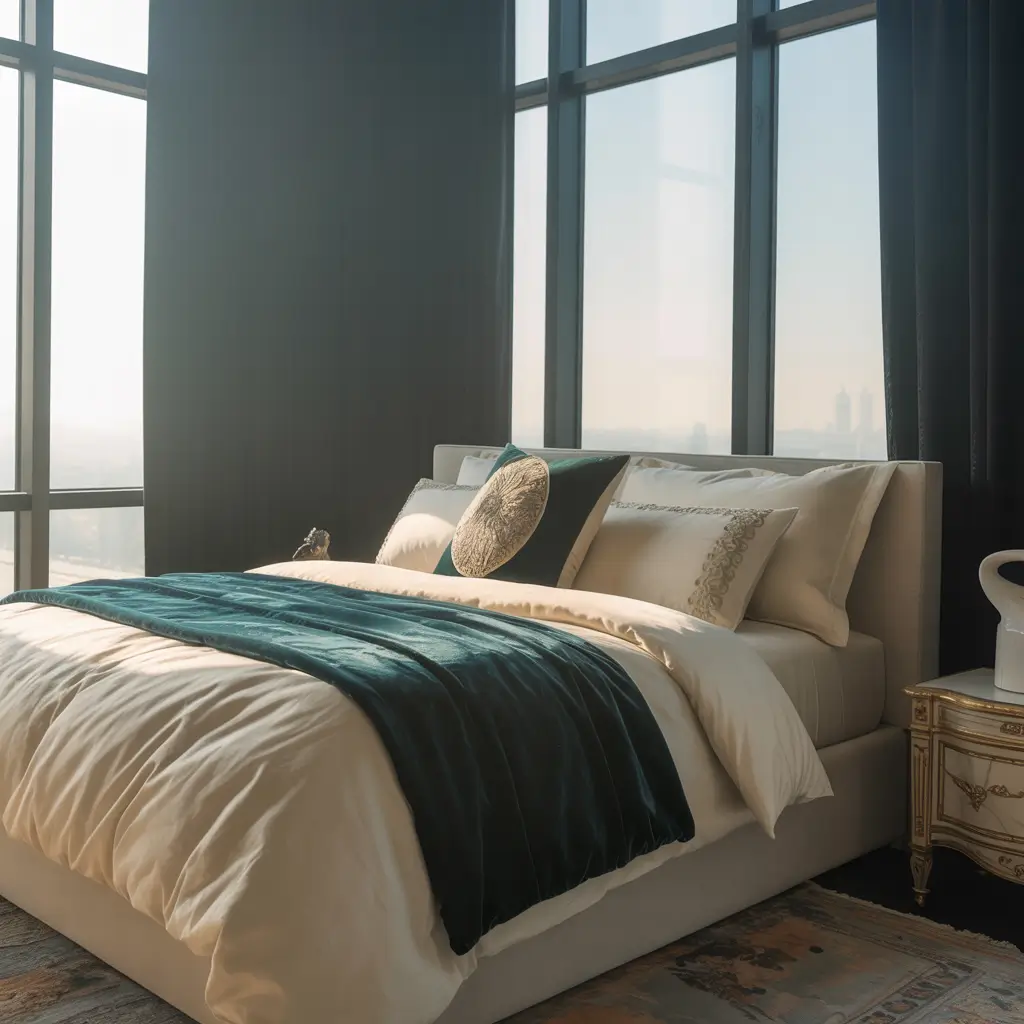 - Pair with neutral bedding for balance