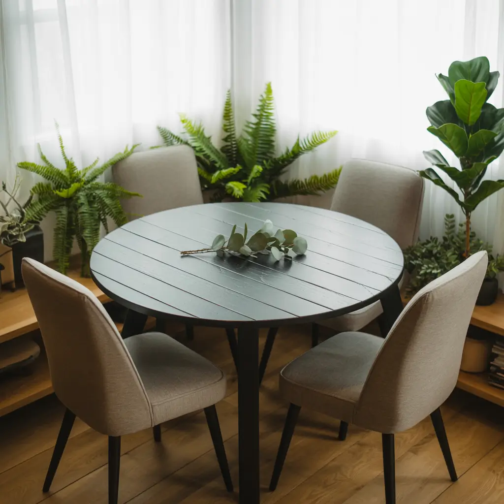 In small spaces, proportion matters more than size. A properly proportioned black table looks right, while an incorrectly sized light table looks awkward. Aim for a table that takes up no more than 1/3 of your dining area floor space.